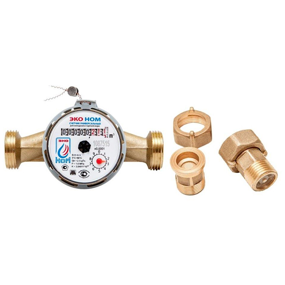 Счетчик воды универсальный ЭКО НОМ DN20 СВ20-130 ДГ+КМЧ с обратным клапаном