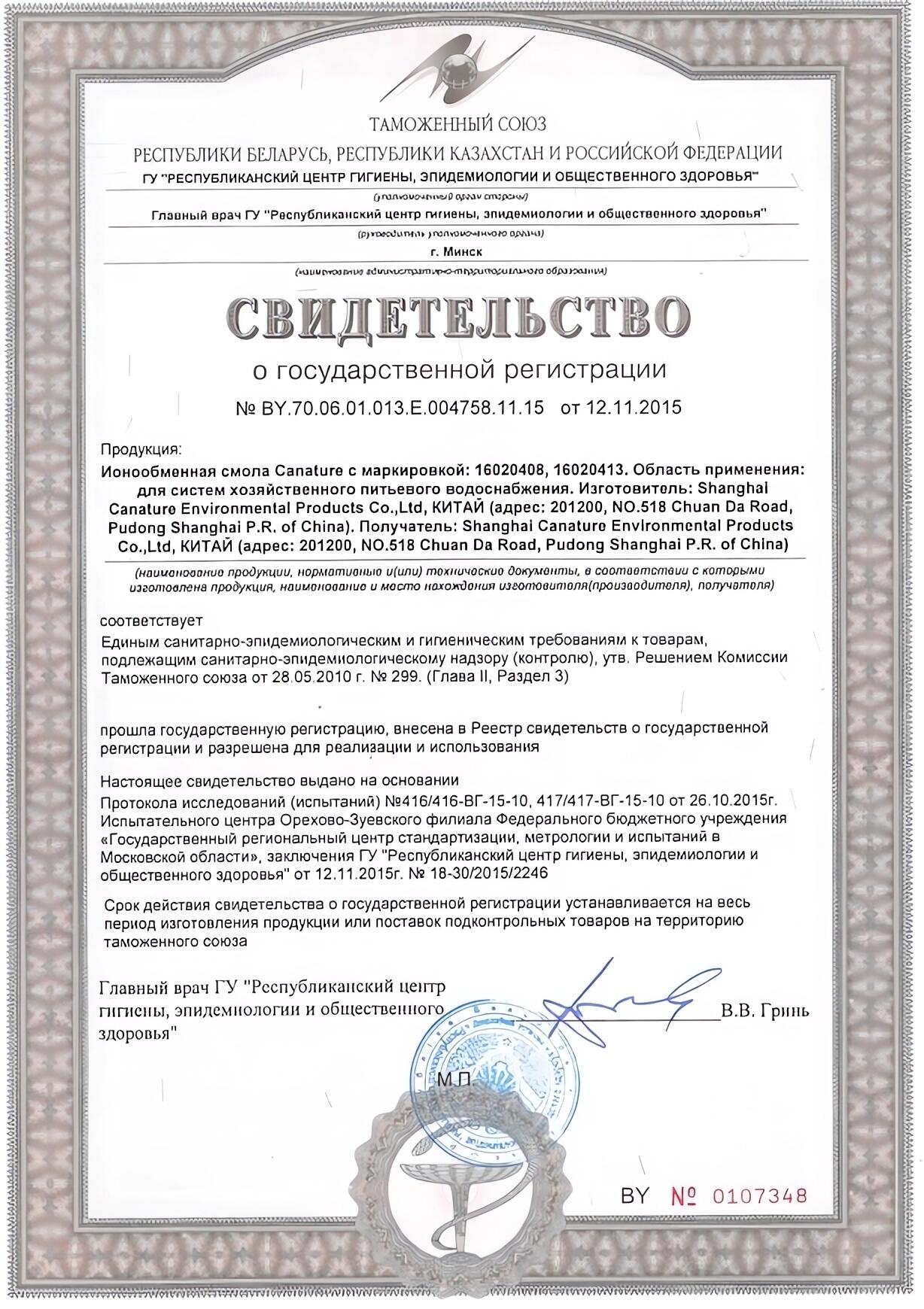 Canature Na FG не растворим в растворах кислот и щелочей и во всех обычных органических растворителях. Присутствие в воде остаточных окислителей (например, свободного хлора или ионов гипохлорита) может привести к уменьшению механической прочности частиц катионообменной смолы. C100E термически стабильна до температуры 120°C, однако при высоких температурах обменная емкость катионобменной смолы в кислотной (H+) форме снижается.