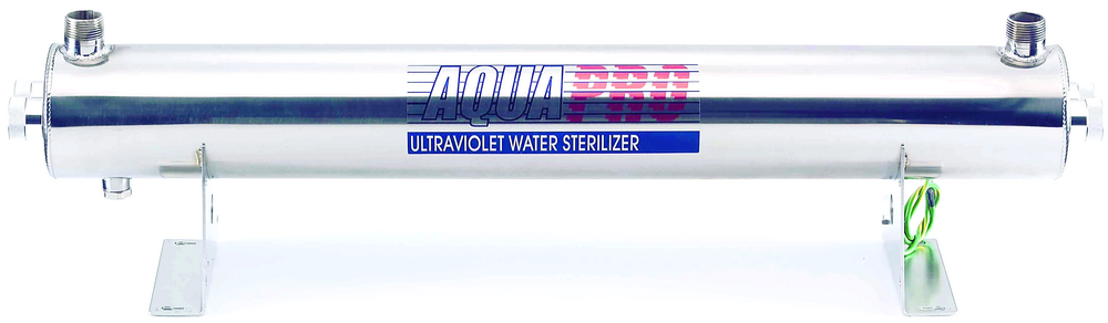 Установка AquaPro UV-12GPM-H (серия бытовых, упрощённых установок) предназначена для обеззараживания питьевой (а также морской) воды ультрафиолетовым излучением. В качестве источников излучения используются кварцевые лампы производства США.