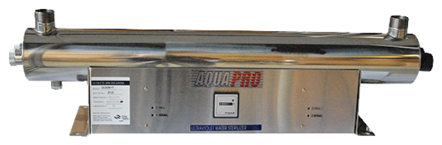 Установка AquaPro UV-24GPM-HT (серия бытовых, упрощённых установок) предназначена для обеззараживания питьевой (а также морской) воды ультрафиолетовым излучением. В качестве источников излучения используются кварцевые лампы производства США.