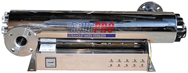 Установка AquaPro UV-60GPM-HT (серия бытовых, упрощённых установок) предназначена для обеззараживания питьевой (а также морской) воды ультрафиолетовым излучением. В качестве источников излучения используются кварцевые лампы производства США.