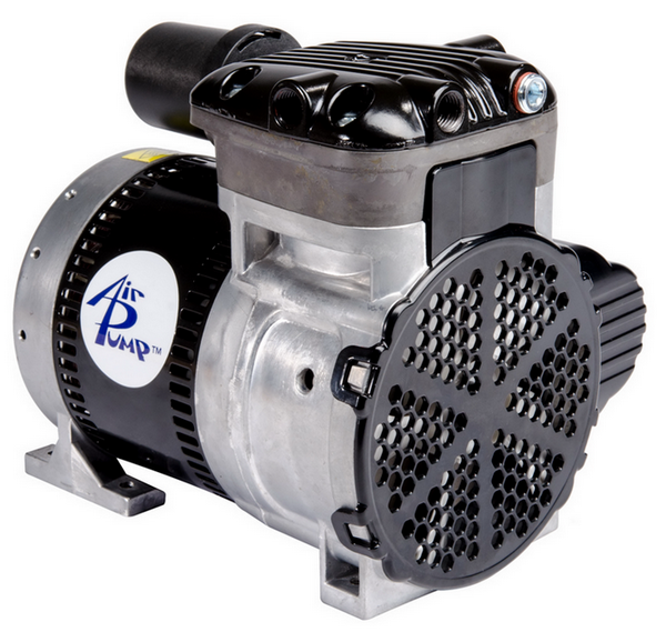 Электродвигатель насоса AIR PUMP CVP2-EC, размещенный в корпусе, питается от сети переменного тока с напряжением 220 В. Для охлаждения двигателя служат 2 вентилятора, крепящиеся на валу с обоих торцов. На боку корпуса смонтирован конденсатор необходимый для запуска электродвигателя.