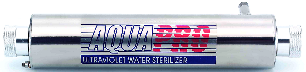 Установка AquaPro UV-1GPM (серия бытовых, упрощённых установок) предназначена для обеззараживания питьевой (а также морской) воды ультрафиолетовым излучением. В качестве источников излучения используются кварцевые лампы производства США.